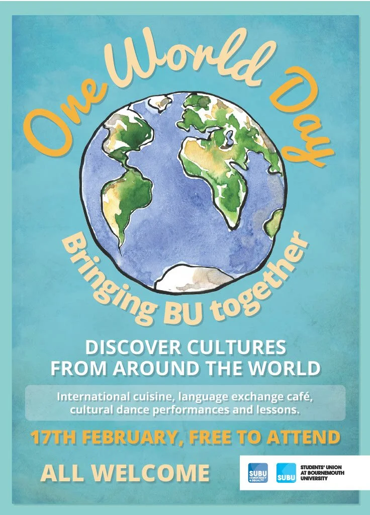 One World Day is an annual celebration of the cultural diversity of Bournemouth University’s staff and students. This event was started in 2015 by me and continues to be one of the most popular events at BU with over 400 students and staff coming together every year. Every year the event includes talks, language and cultural exchange sessions and a big celebration in the evening with food, music and dance.
